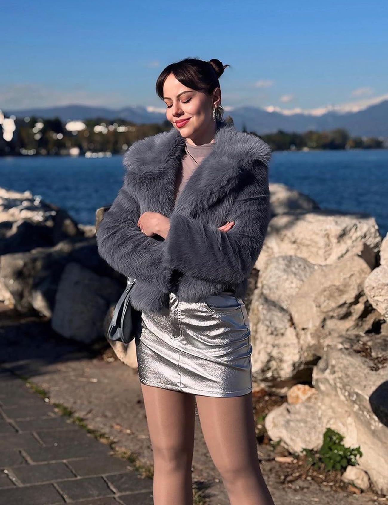 Flygo Women's Faux Fur Coat Fluffy Faux Fur Jacket Long Sleeve Lapel Furry Winter Jackets Shaggy Parka Short Coat